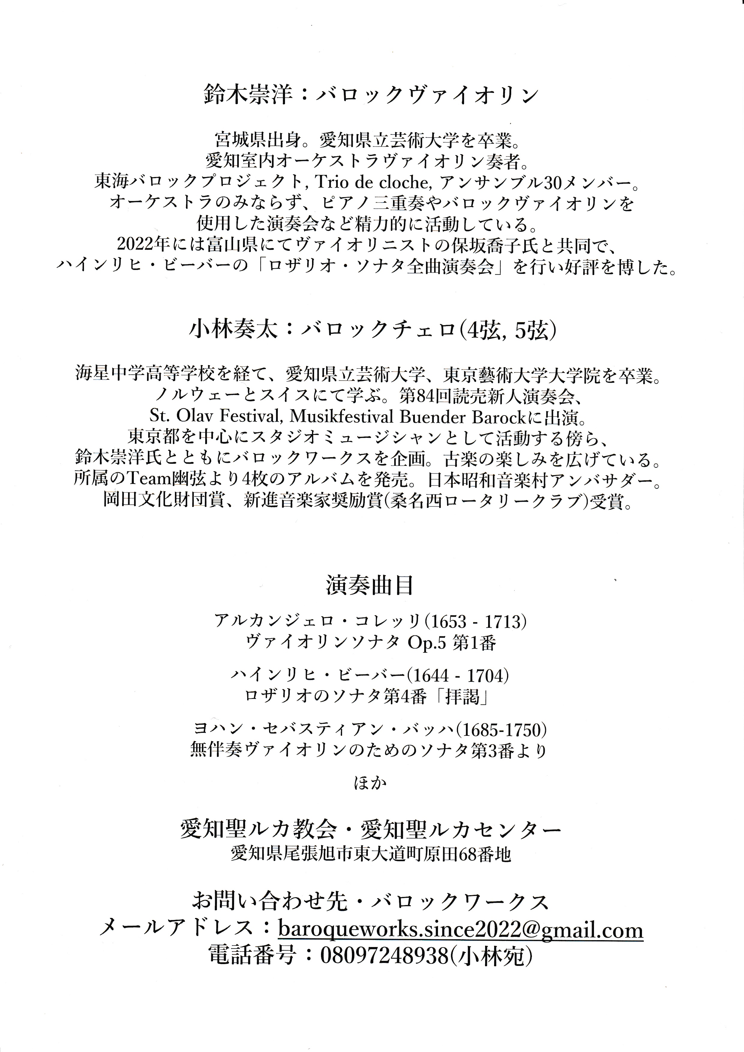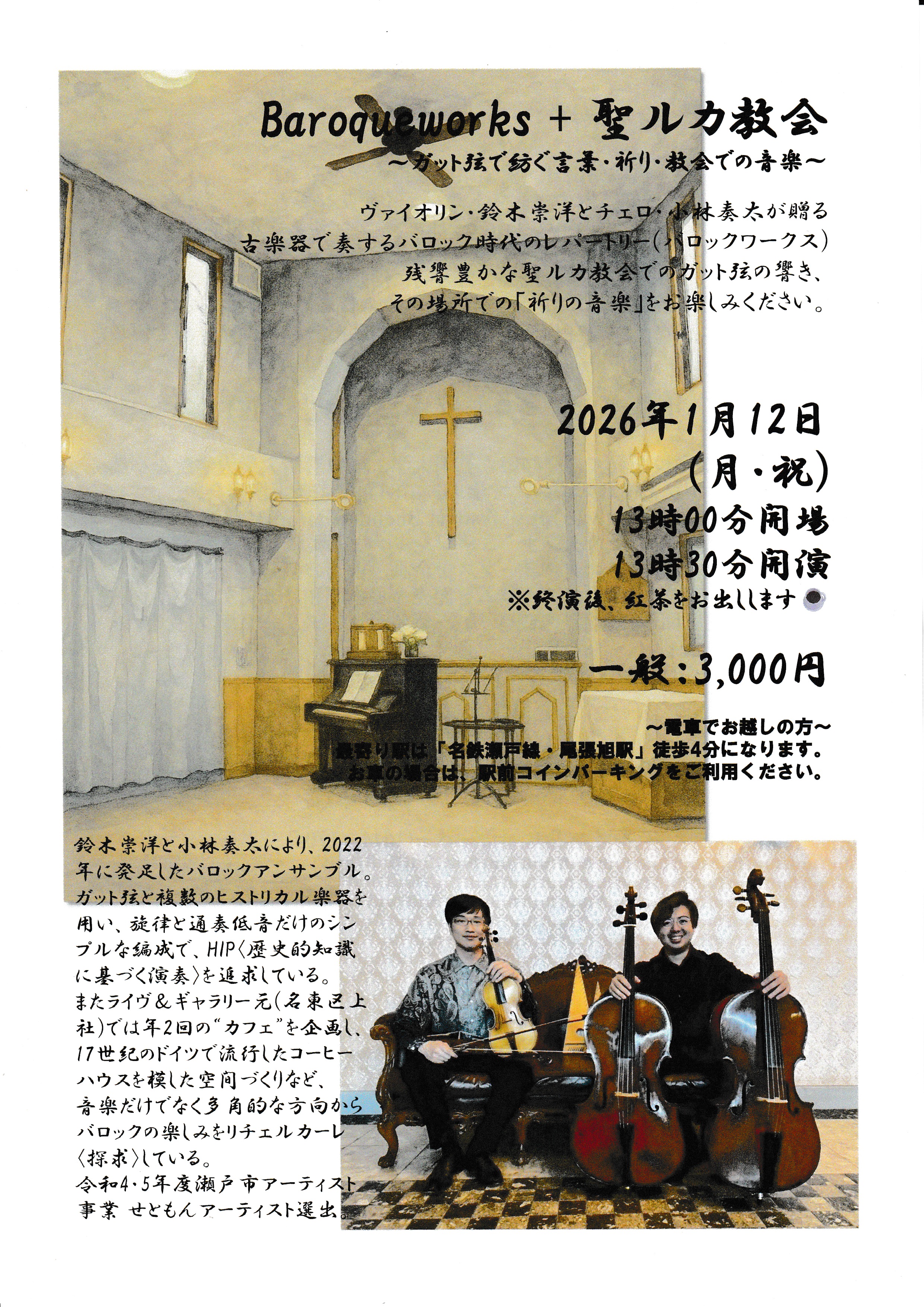 ☆ バロックワークス×聖ルカ教会〜ガット弦で紡ぐ言葉・祈り・教会での音楽 ☆ -- posted by バロックワークス