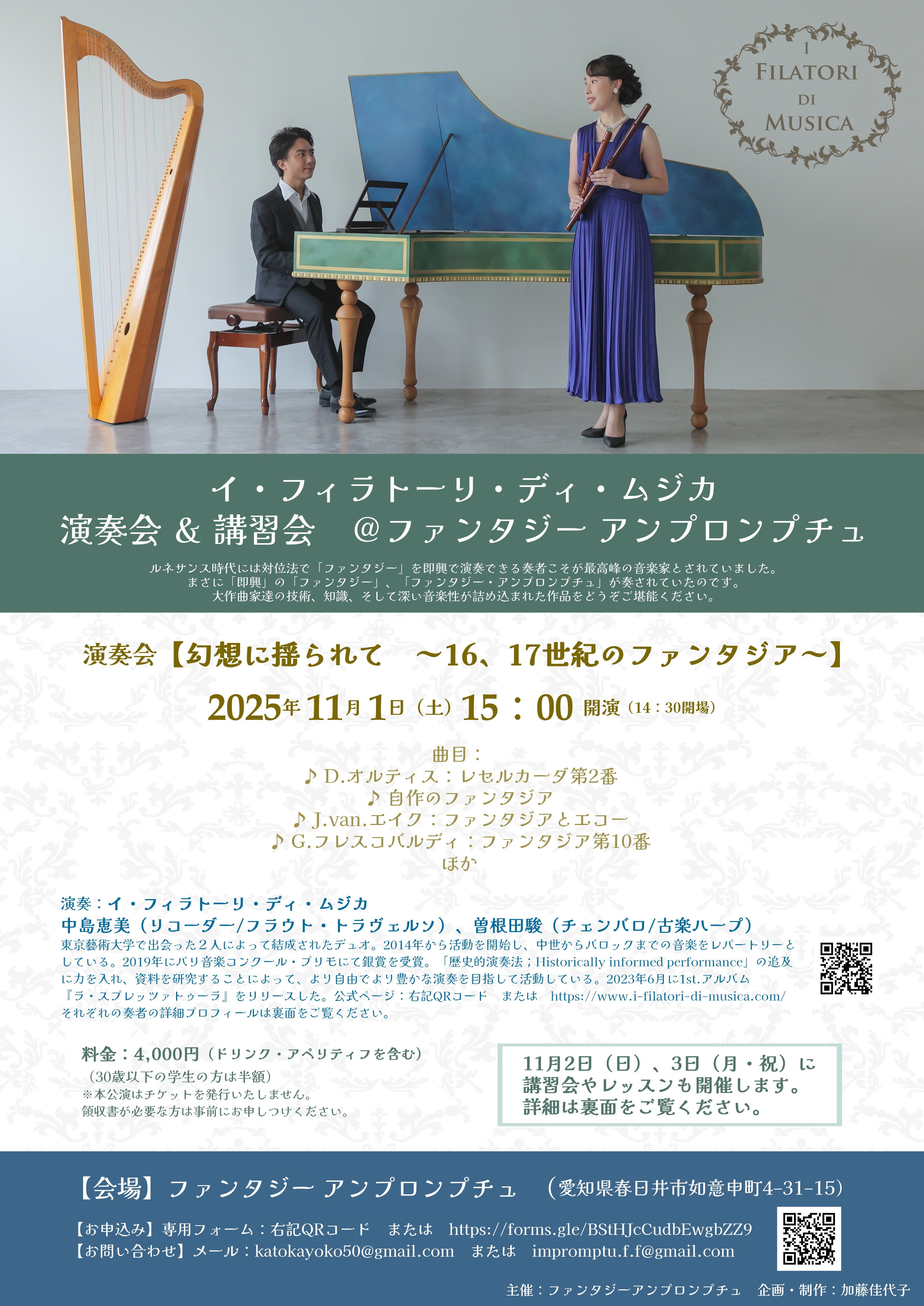 ☆ イ・フィラトーリ・ディ・ムジカ 演奏会 & 講習会 @ファンタジー アンプロンプチュ ☆ -- posted by 曽根田 駿