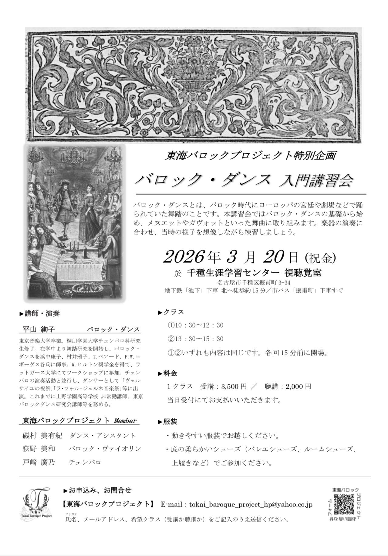 問い合わせ:tokai_baroque_project@yahoo.co.jp(東海バロックプロジェクト)
